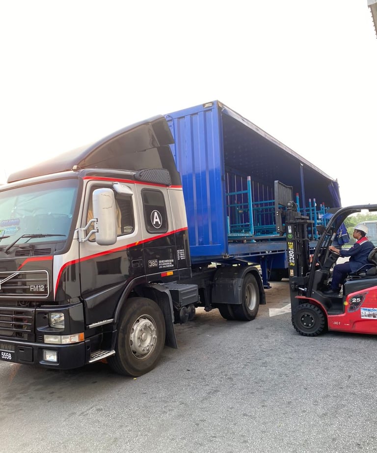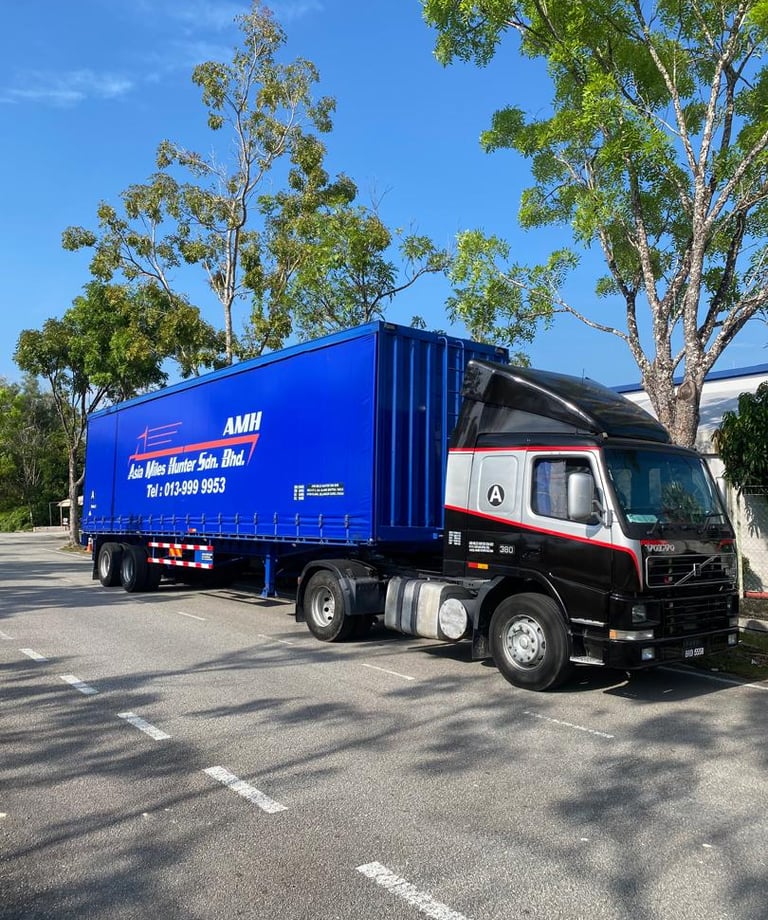 We deliver goods throughout Peninsular Malaysia. Our modern fleet, featuring 40-foot curtain sider trucks and other vehicles, ensures efficient and secure transport for clients across various industries